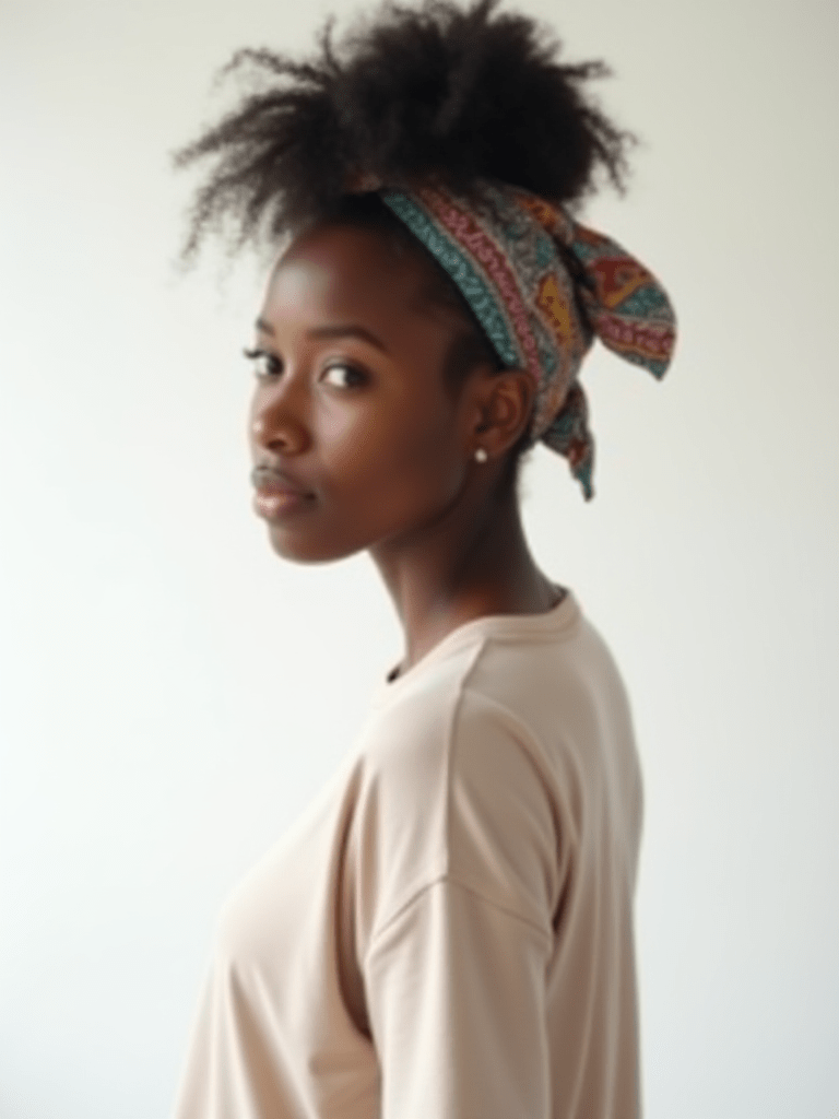 Simply tie the bandana around your head, gather your hair up, and you’re done!