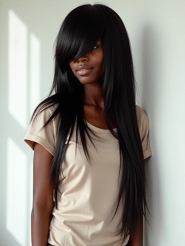 Feathered bangs offer a soft, feminine touch. They beautifully frame your face,enhancing your features.