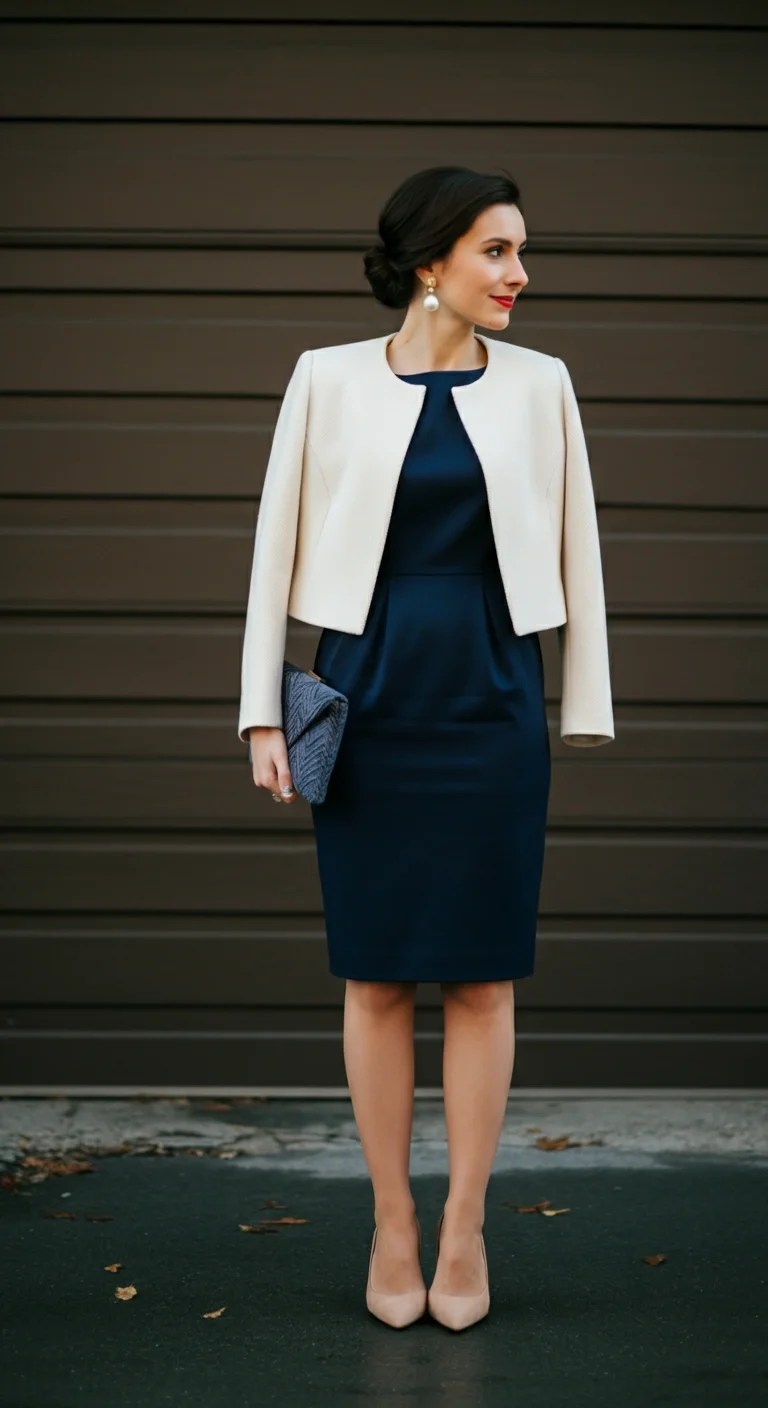 elevate your style with nude heels and subtle pearl jewelry for a polished finish.