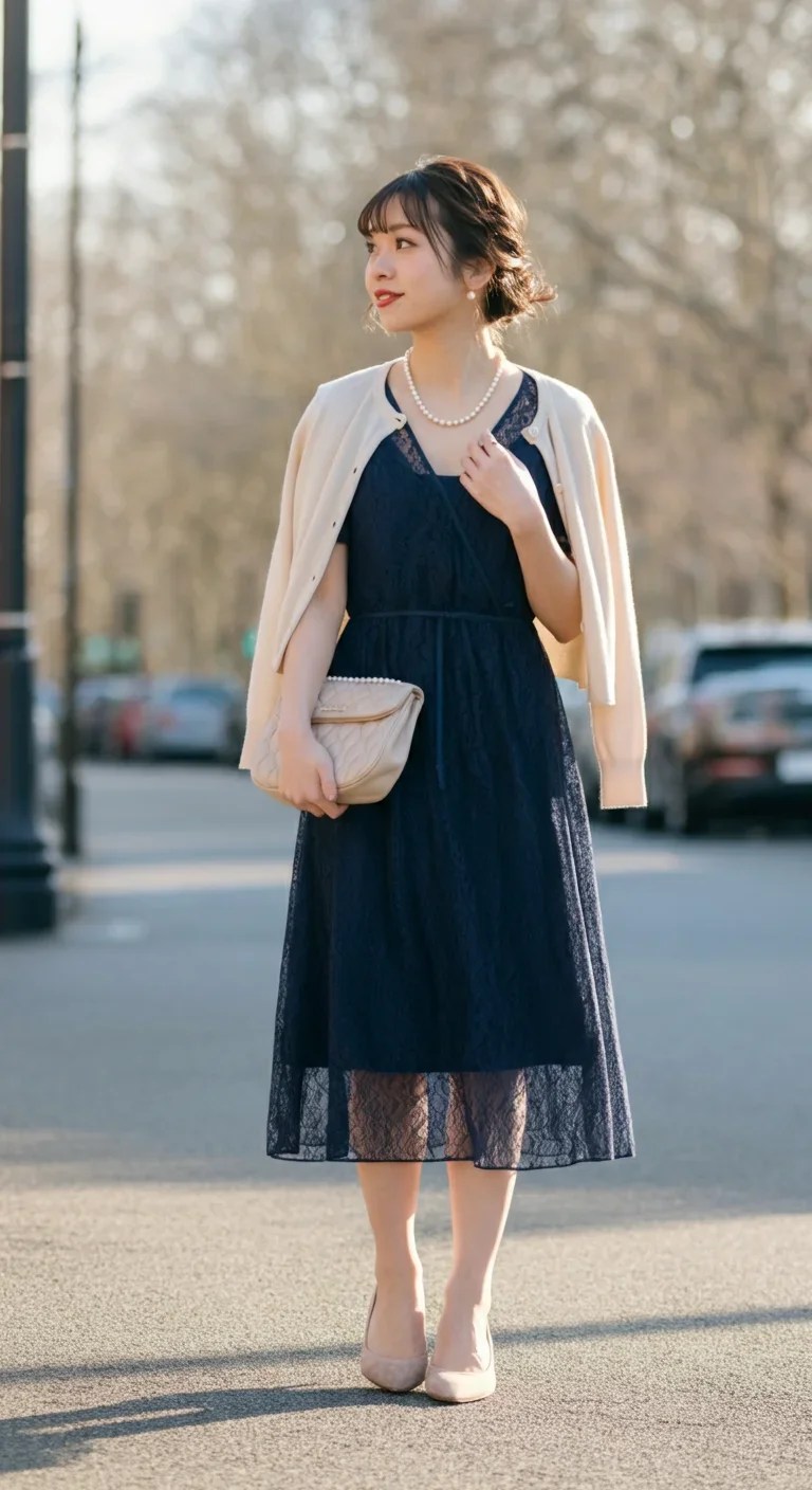 A light cream cardigan offers both cozy warmth and a touch of elegant coverage.