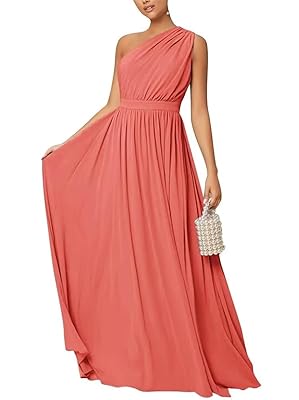 Embrace a modern take on formal style with a chic coral one-shoulder jumpsuit.