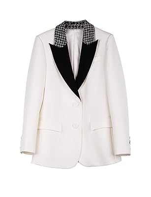 Buy on AmazonA crisp white tuxedo dress, accented with sleek black satin lapels, exudes modern elegance.