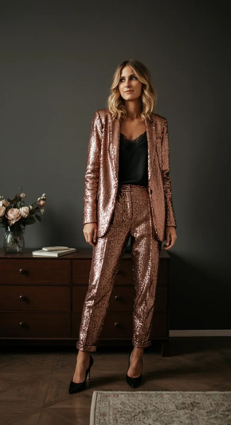 Buy on AmazonShine luminous in 2025! A rose gold sequin blazer paired with matching pants guarantees a memorable entrance.