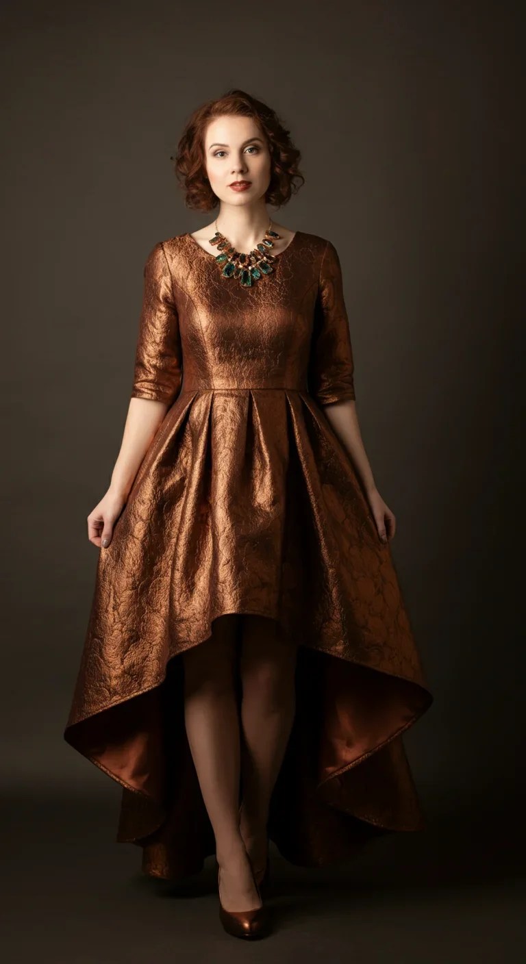 Buy on AmazonMake a stunning entrance and exit with this copper brocade high-low dress. It’s designed for dramatic flair.