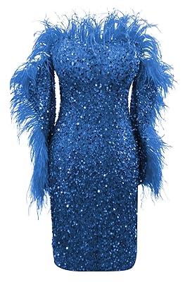 Buy on AmazonExperience subtle drama with this midnight blue column dress, now featuring updated feather trim for 2025.