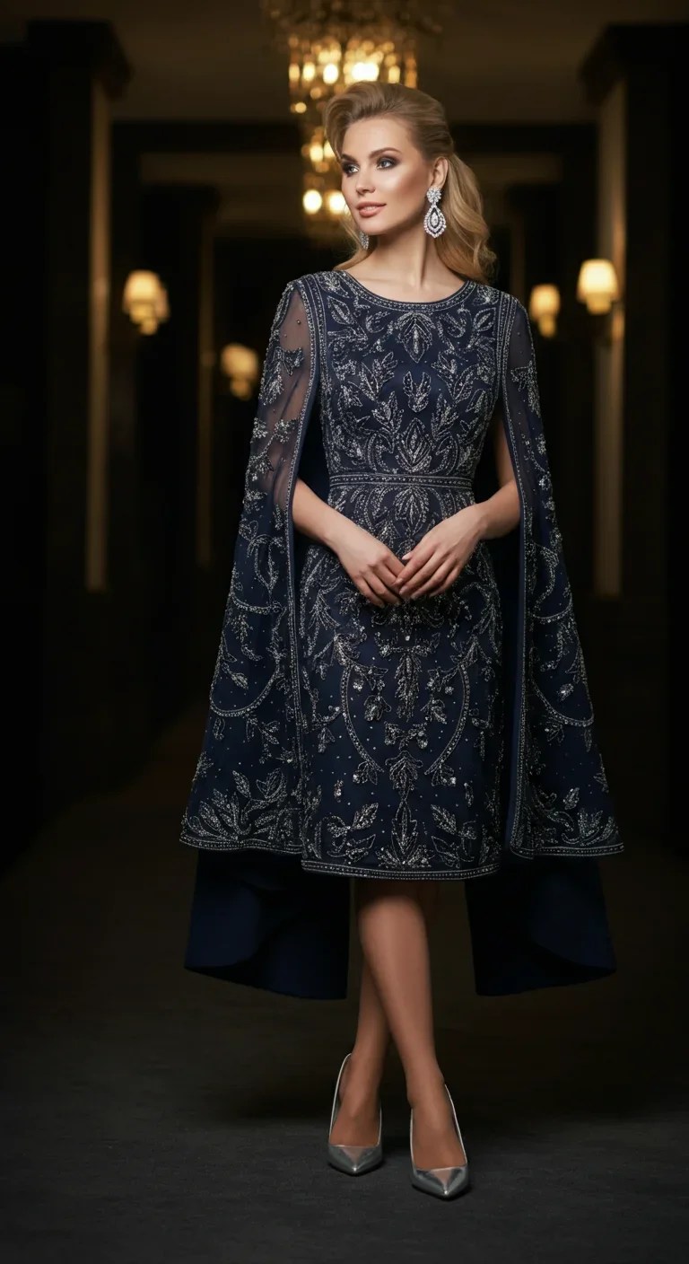 Buy on AmazonA timeless navy cape dress offers both sophistication and a touch of contemporary flair.