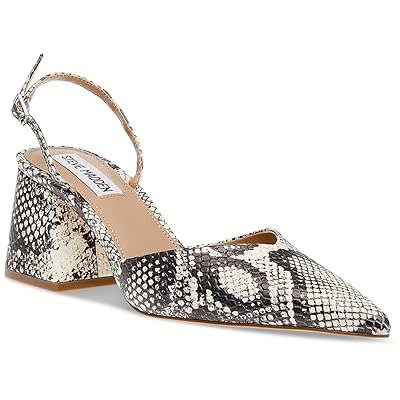 Kitten heels with snake print offer a delicate touch of pattern.