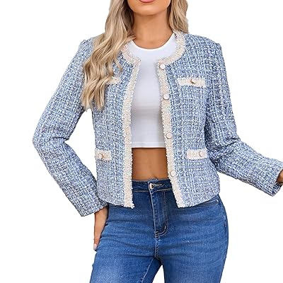 A cropped jacket and high-waisted pants offer a contemporary silhouette in 2025.