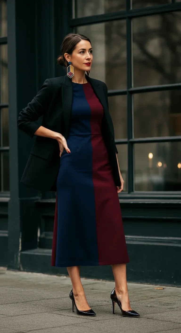 Color-Blocked Dress with Architectural Details