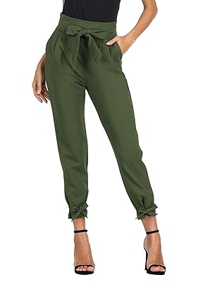 Paper bag waist pants cinch the waist, creating a flattering silhouette.