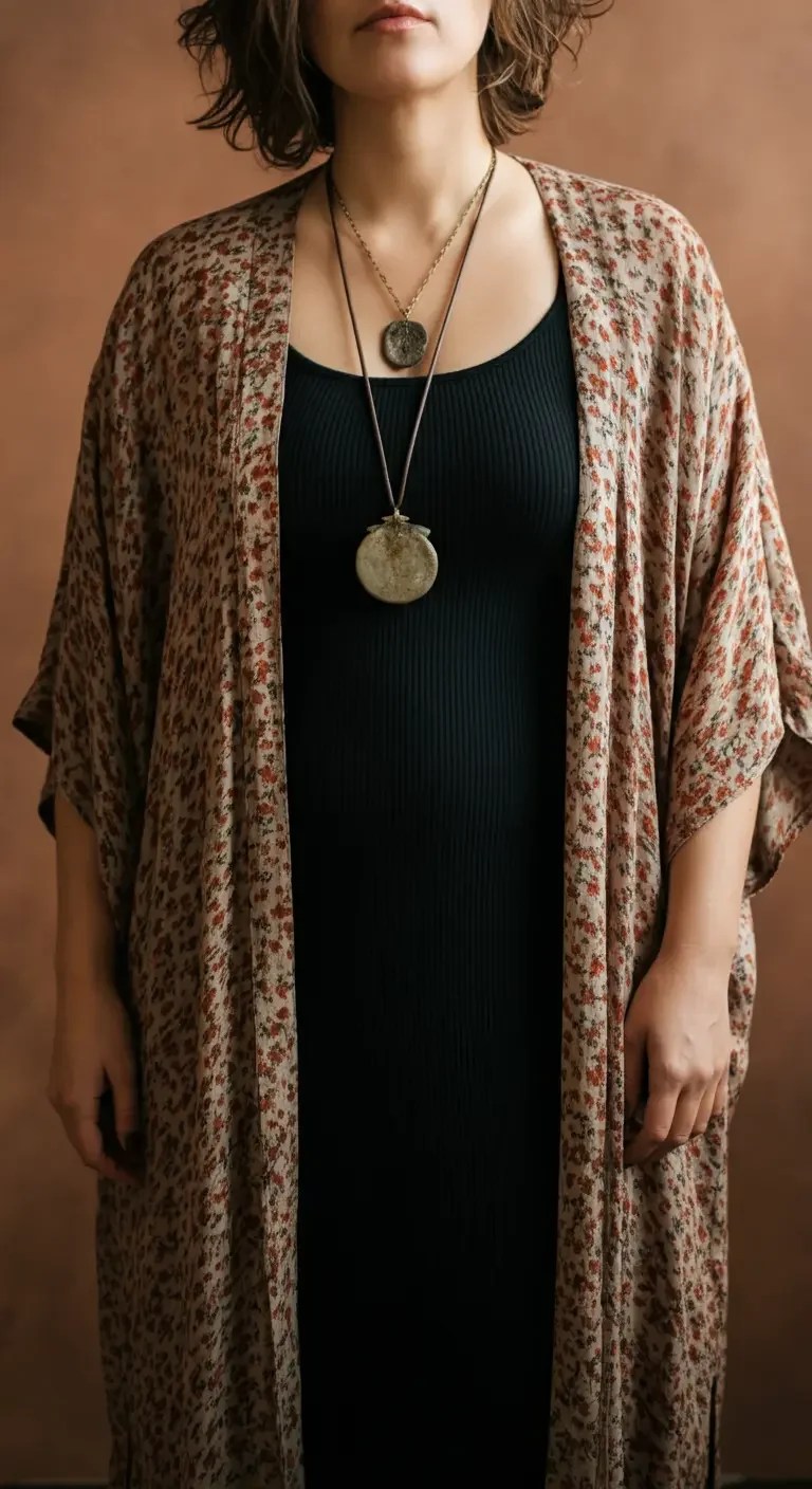 Elevate your look with a striking printed kimono. It adds dynamic movement and vibrant color to any outfit.