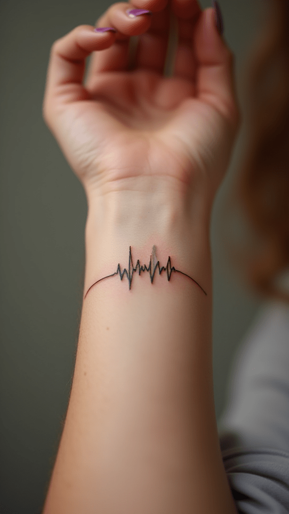 Embrace a fashionable and modern look with a subtle heartbeat tattoo.