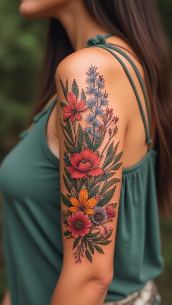 Tired of flowers that fade? Choose a permanent garden. Get a stunning floral tattoo on your arm.