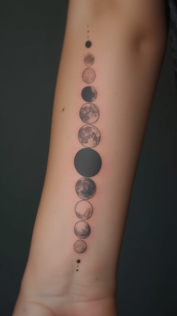Embrace the moon’s captivating journey with a gorgeous moon phases tattoo.