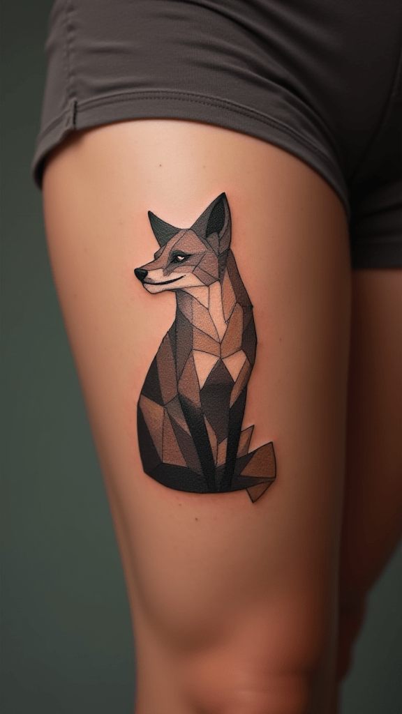 In 2025, geometric fox tattoos remain a popular choice, artfully merging the fox’s cunning nature with striking, modern geometric patterns.