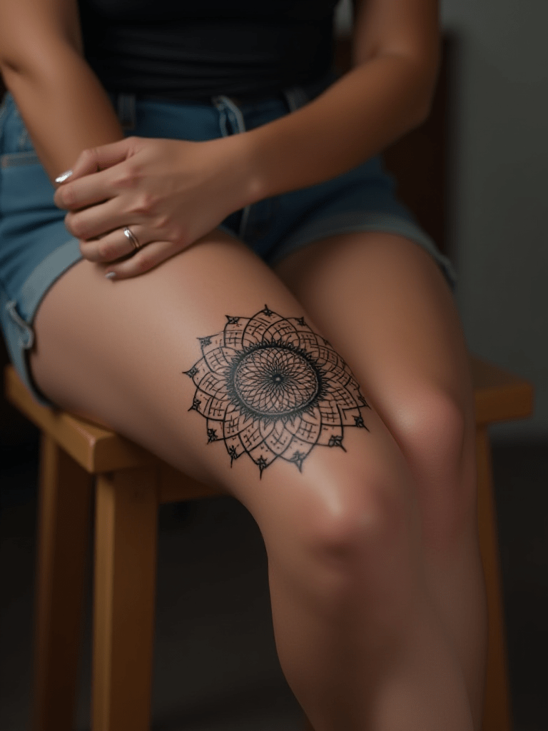 A decorative garter tattoo encircles your thigh, resembling elegant, everlasting lingerie.